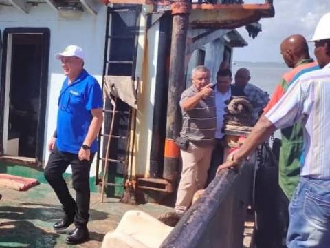 El Astillero del Caribe (Asticar) y la Unidad básica de Navegación Caribe de Cienfuegos fueron parte de la visita llevada a cabo en el día de hoy por el Ministro del Turismo, Juan Carlos García Granda, Presidente de Gran Caribe y Roberto Ricardo Marrero, Director General del Grupo Empresarial Maritimo Portuario, acompañado directivos del OSDE GEMAR. con el objetivo principal de valorar, junto a las autoridades del Gobierno de la provincia, el plan de mantenimiento y reparación naval de las embarcaciones que aseguran los suministros a Cayo Largo del Sur y chequear la reparación de la Patana de Agua y la RoRo Pelicano.